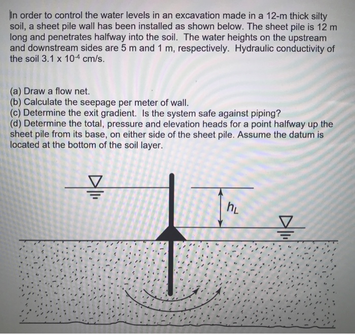 A compute the total quantity of seepage in units of ft through the soil over a 24 hour b compute the critical hydraulic gradient and factor of safety against quick sand given this.