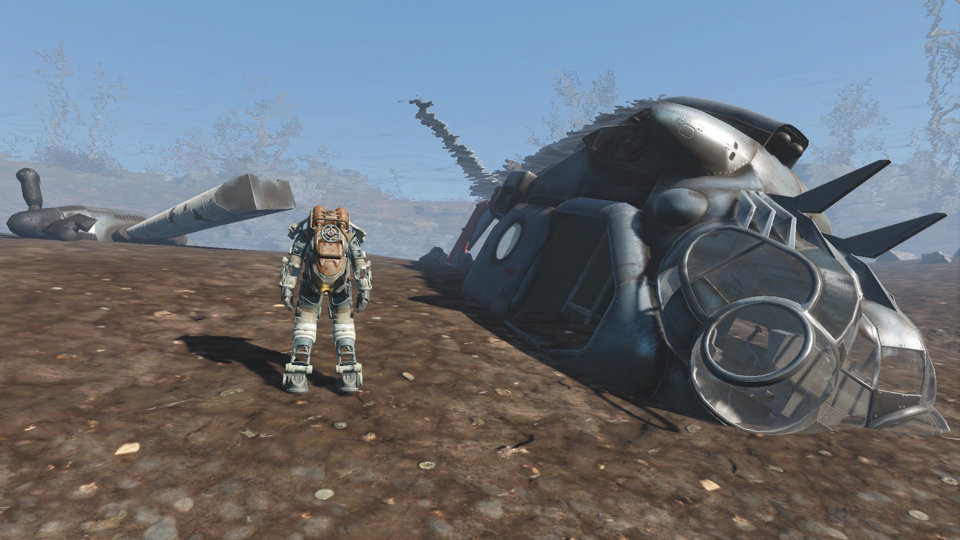 Staying at a certain distance from the usaf satellite station olivia until you see a crashed vertibird with a full set of t 45 power.