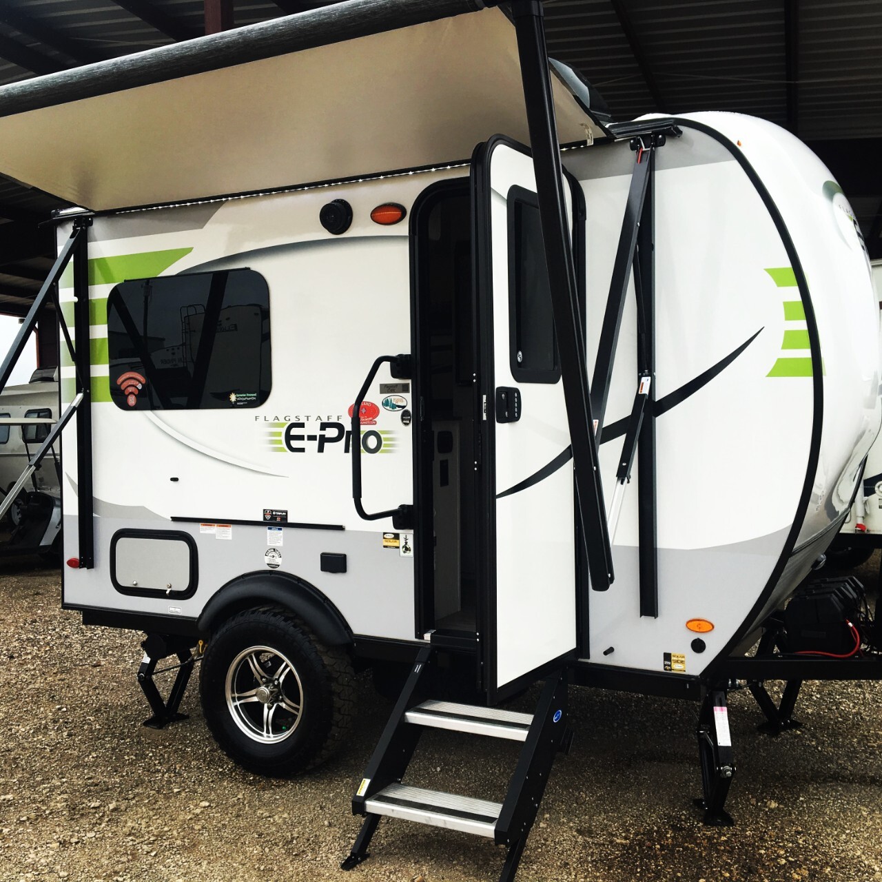 The flagstaff e pro has gone to the next level with its refreshing two tone fiberglass exterior modern touches like led exterior lights available roof mount flexible solar panel system and distinctive décors with euro style cabinets.